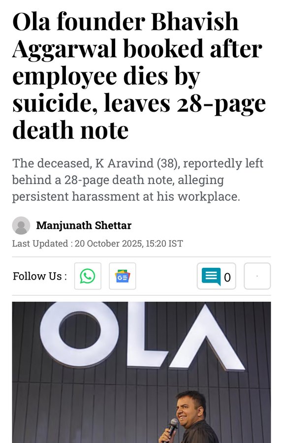 Second suicide at Ola within 6 months because of workplace harassment / pressure.