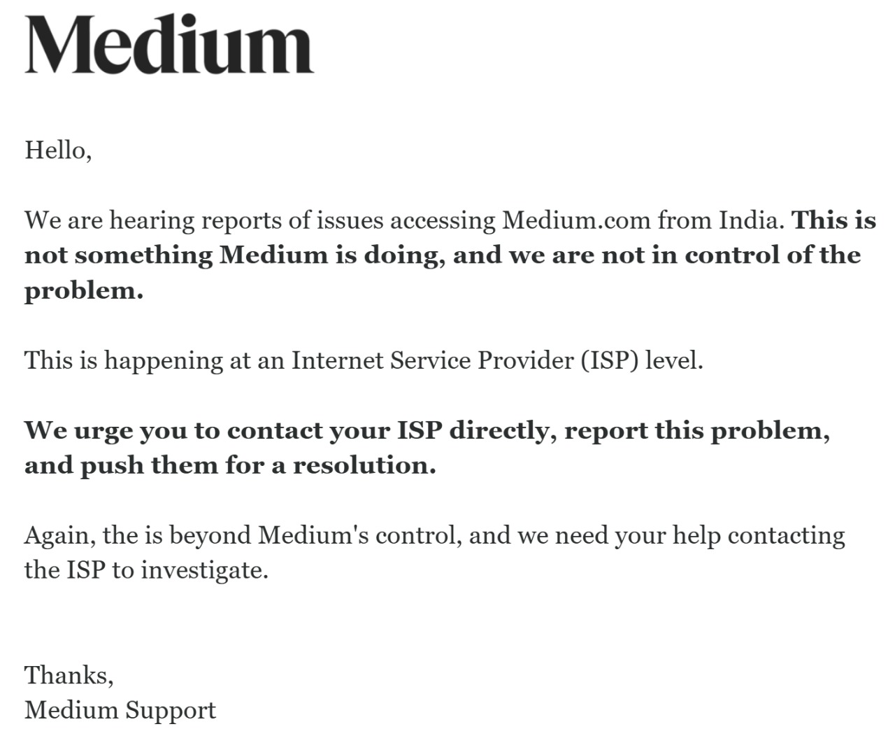 Medium is not working since last week in India. Had a talk with them, they say its an ISP issue. So, please connect with your service provider - Jio, Airtel, etc. and raise query regarding this.