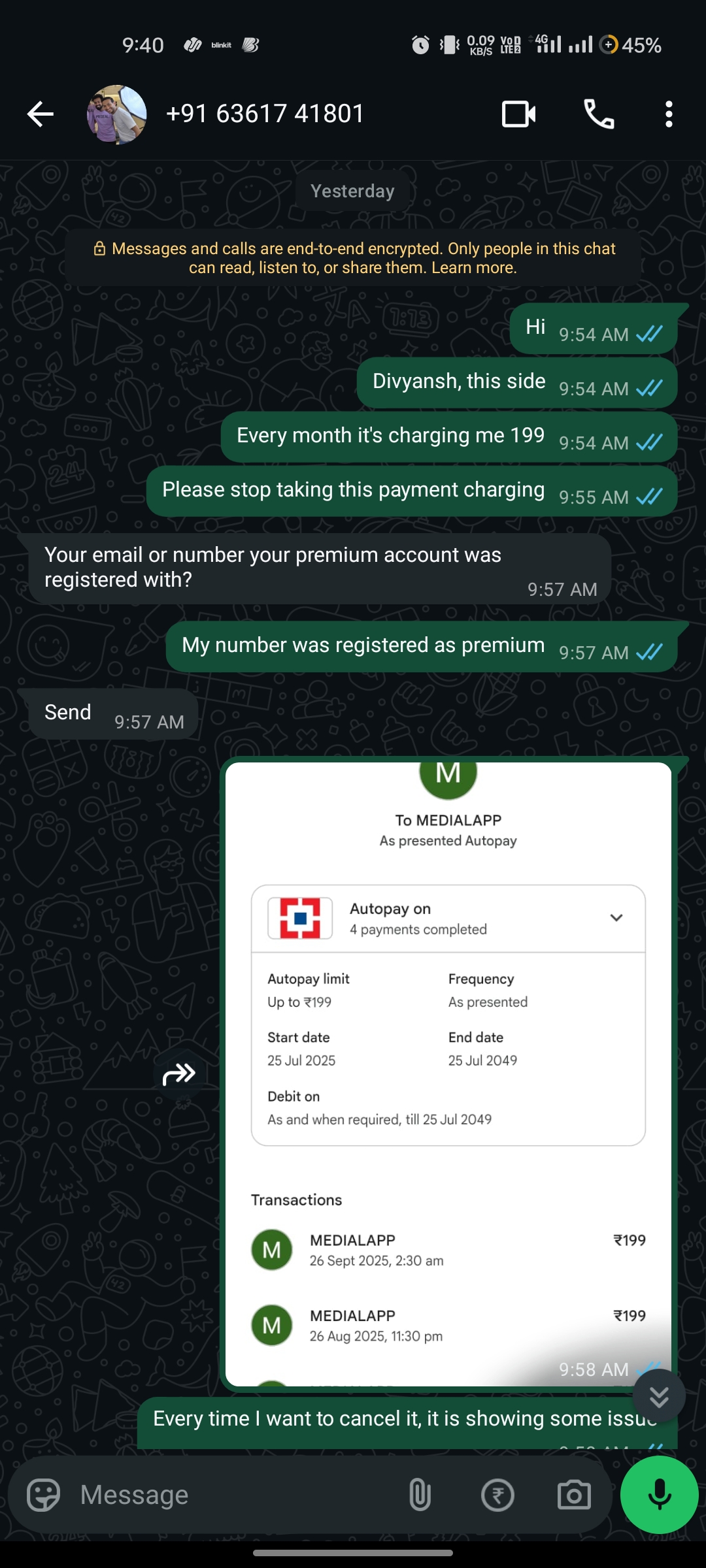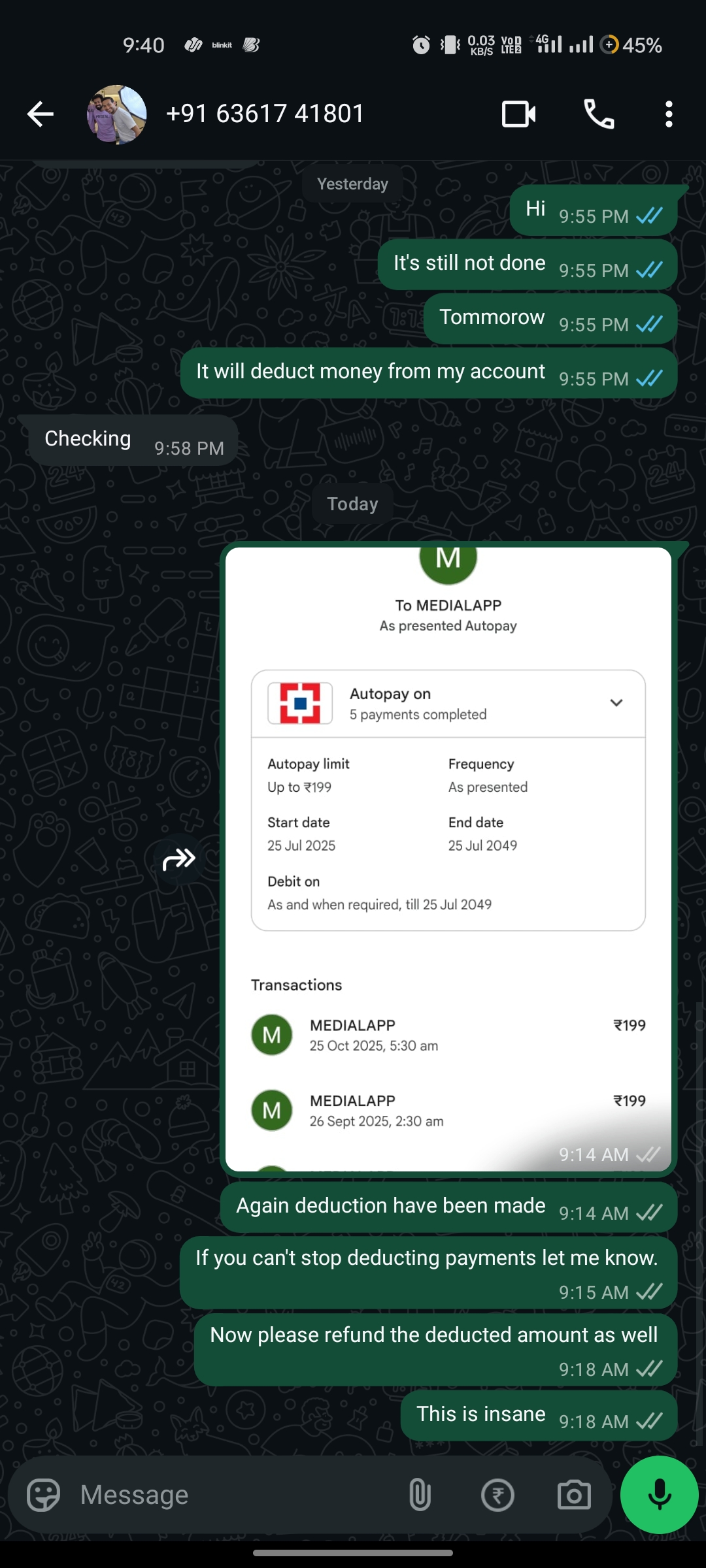 BEWARE!! After texting you still have no resolution from your side, again you have deducted the amount. I would suggest every user to try to cancel their subscription one time, everyone will not be able to cancel your subscription. they are extorting money. they have stopped the payment cancellation from their backend and after sending them numerous feedback forms, I have not received one response from them. THERE ARE MANY PEOPLE LIKE ME! I would request all users to at least try to pause or cancel their subscription payment once, I'm sure you'll face the same issue.