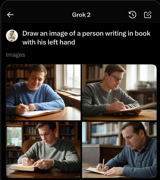 If you ask AI to draw a man writing with left hand, it will most likely generate a man drawing with the right hand : PM Modi I tested this with both Grok and ChatGPT, and the results confirmed this pattern. Give it a try yourself and see what happe