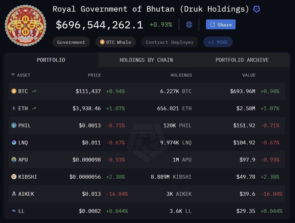 🇧🇹 The Royal Government of Bhutan now has $696M in crypto.