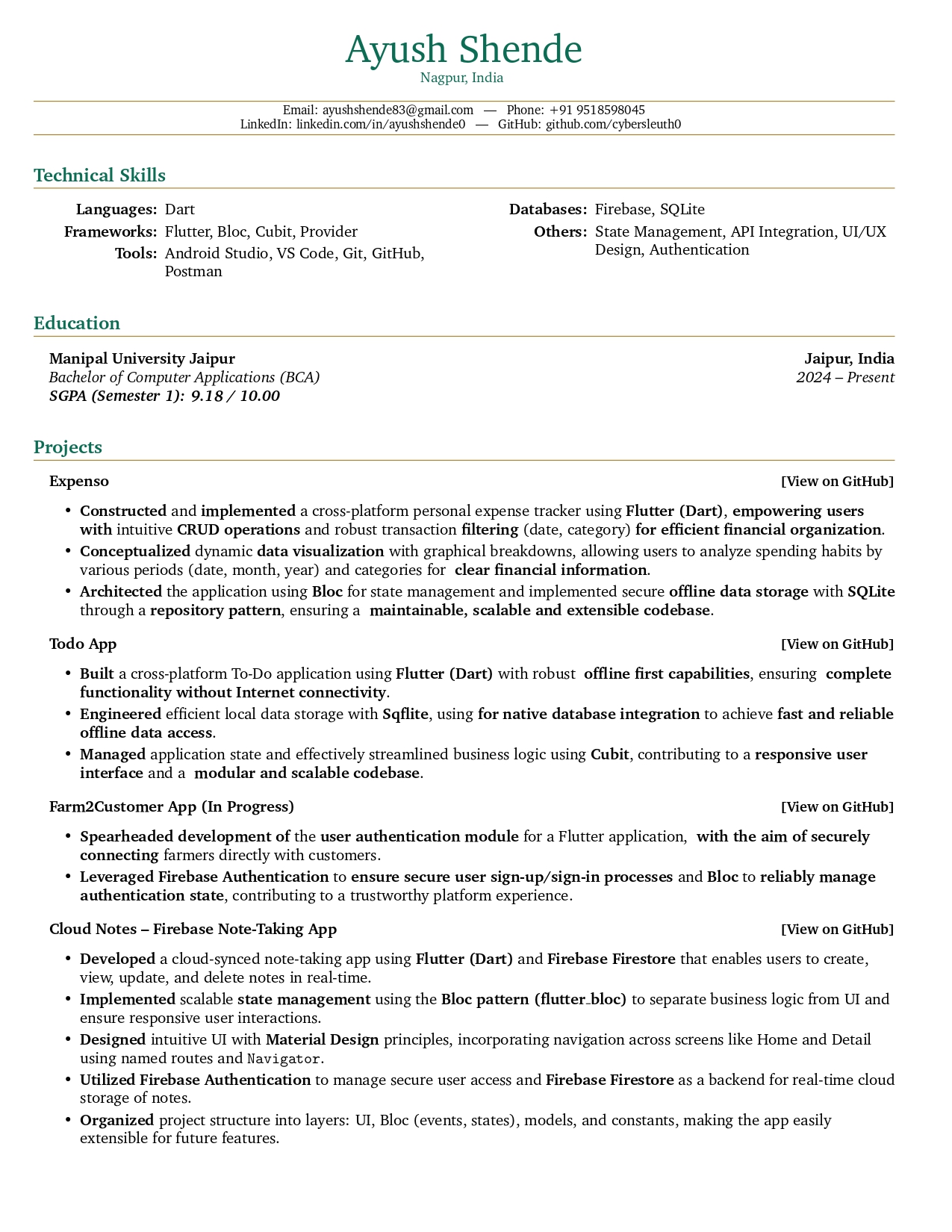 ๐ Looking for a Flutter Developer Internship Hey Medial community! ๐ I'm Ayush Shende, a passionate Flutter developer actively looking for internship opportunities in the field of mobile app development. With hands-on experience in: โ Building r
