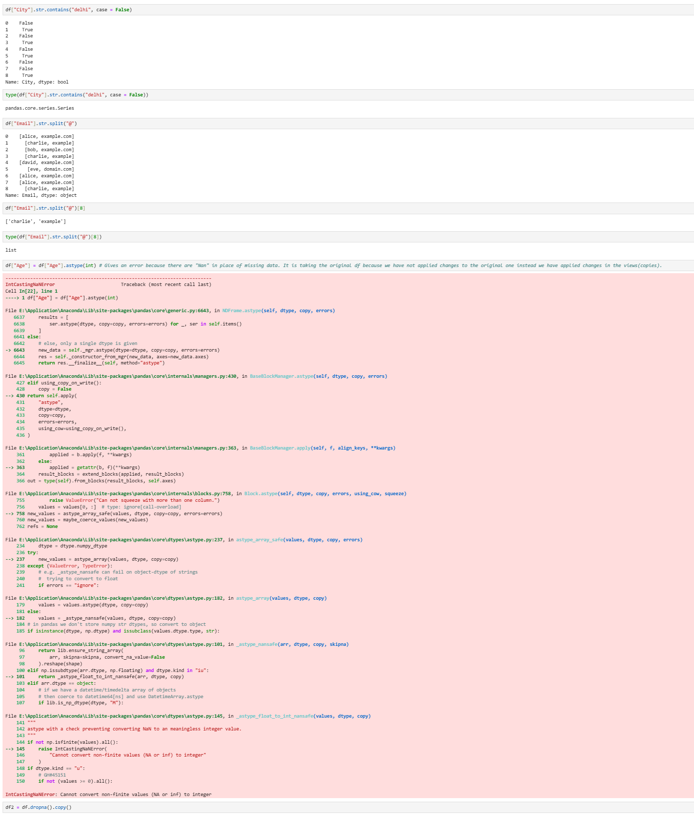 Day 13 of learning data science as a beginner. Topic: data cleaning and preprocessing In most of the real world applications we rarely get almost perfect data most of the time we get a raw data dump which needs to be cleaned and preprocessed before being made use of (funfact: data scientist put 80% of their time in cleaning and preprocessing the data) Pandas not only allows us to analyse the data but also helps us to clean and process the data some of the most commonly used pandas data preprocessing functions are .isnull: checks whether there are any missing values in the data set or not .dropna: deletes all the rows containing any missing value .fillna: fills the missing value using Nan .ffill: fills the last know value from top in place of missing value .bfill: fills the last know value from bottom in place of missing value .drop_duplicates: drop the rows with duplicate values Then there are some functions for cleaning the data (particularly strings) .str.lower: converts all the character into lowercase .str.contains: checks wheter the string contains something specific .str.split: split the string based on either a white space or a special character .astype: changes the data type .apply: applies a function or method directly to a row or column .map: applies a transformation to each value .replace: replaces something with another And also here is my code and its result
