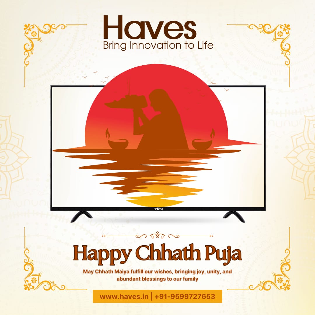 ✨ May the divine rays of Chhath Puja fill your home with light, happiness & harmony. 🌞 Celebrate tradition with innovation — Celebrate with Haves Smart LED TV! 💫 #HappyChhathPuja #ChhathPuja2025 #HavesTechnology #SmartLiving #FestivalOfFaith #InnovationToLife #HavesSmartTV #IndianFestivals #BlessingsOfChhath #MadeInIndia