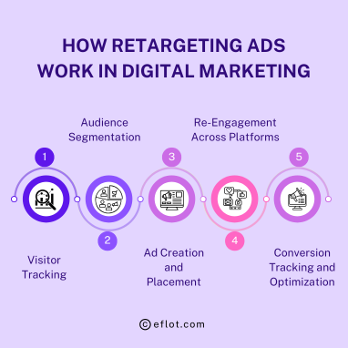 How Retargeting Ads Work in Digital Marketing - Eflot Retargeting ads in digital marketing work by showing ads to people who have already visited your website or interacted with your content but didn’t make a purchase or take action. When someone visits your site, a small tracking code (called a pixel) saves their activity. Later, when they browse other websites or social media, they’ll see your ads again, reminding them of your products or services. This helps keep your brand in their mind, increases engagement, and improves the chances of turning visitors into customers. https://eflot.com/digital-marketing-agency-in-bangalore