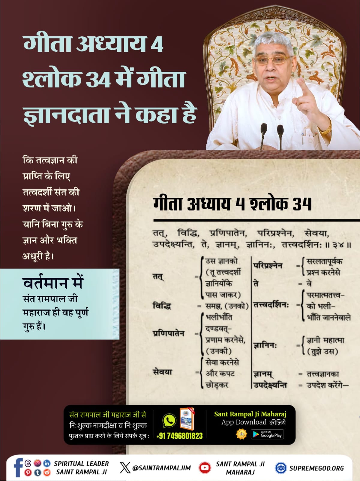 श्री नानक देव जी ने श्री गुरु ग्रन्थ साहेब जी के पृष्ठ 1342 पर कहा है:- ‘‘गुरु सेवा बिन भक्ति ना होई, अनेक जतन करै जे कोई’’ #पूर्णगुरु_संतरामपालजीमहाराज #gurudev #baba #SantRampalJiMaharaj #guruji #astrology #SupremeGod #KabirIsGod ✰किसी भी जीव को मनुष्य जीवन कैसे मिलता है?✰ अवश्य पढ़ें पवित्र सद्ग्रंथों पर आधारित संत रामपाल जी महाराज द्वारा लिखित पुस्तक *ज्ञान गंगा*। निःशुल्क पुस्तक प्राप्त करने हेतु अपना नाम, पूरा पता, और मोबाइल नंबर हमें व्हाट्सएप करें : +91 7496801825