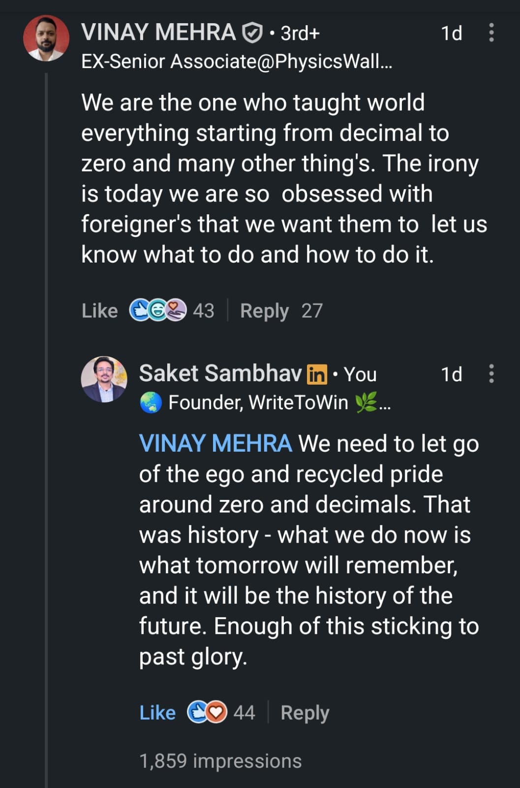 India gave the world zero. But if we keep circling it, weโll never move FORWARD. Yes - our ancestors gifted the world decimals, astronomy, and philosophy. But recycled pride is NOT progress. Itโs nostalgia dressed as nationalism. ๐ The future