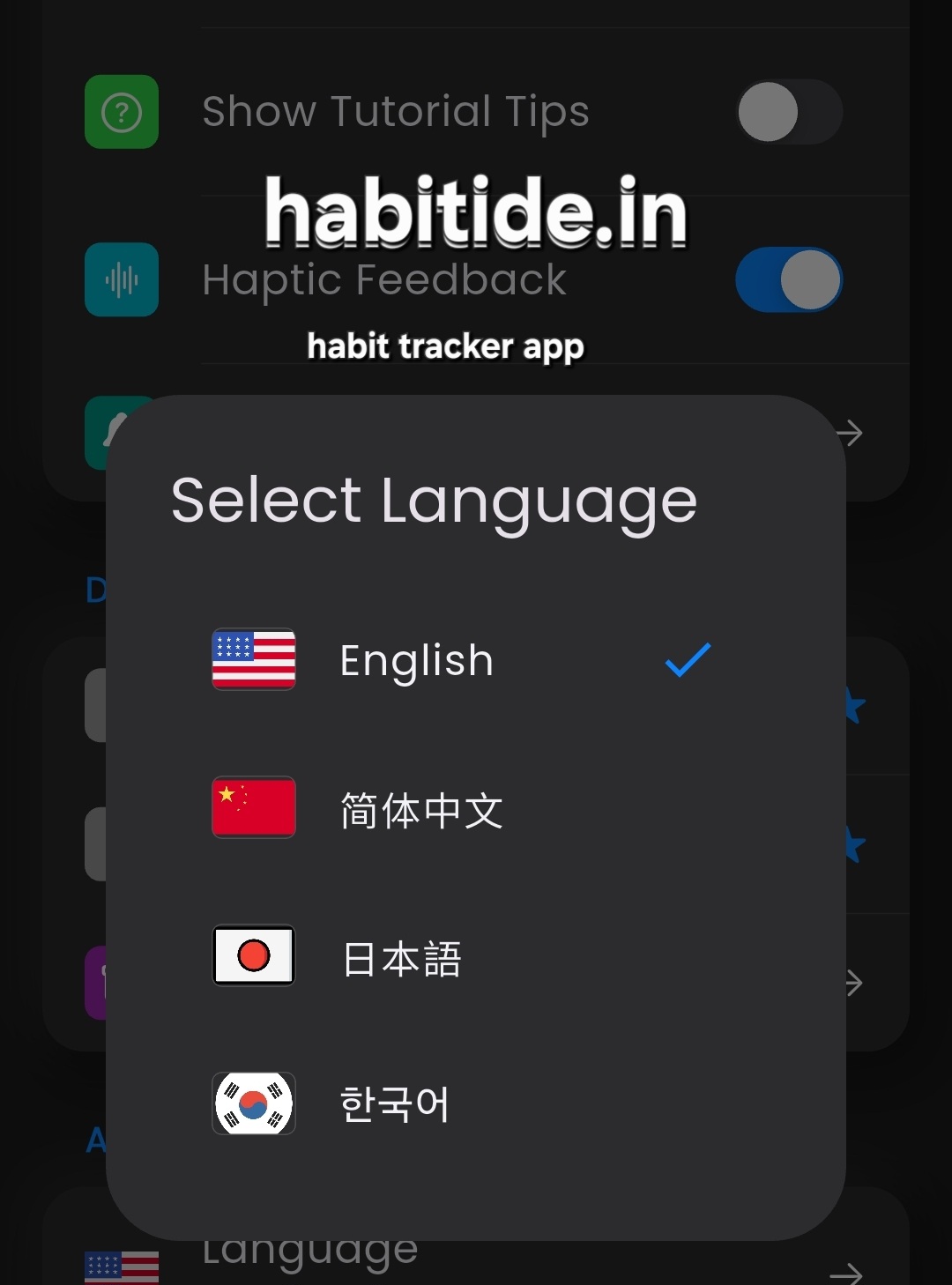 I have read in someone's post that making your app support internationalization can make it grow faster, as country-specific languages boost user engagement. So I did the same with Habitide; currently, it supports four languages.