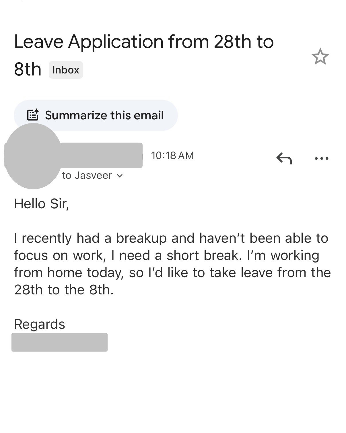BREAKING: Gen Z Rewrites the Leave Application! This viral leave app (Oct 28-Nov 8) cites a breakup as the reason - approved instantly by CEO Jasveer Singh ๐