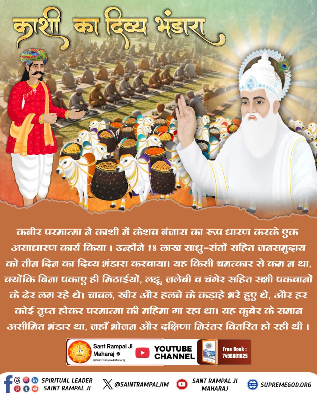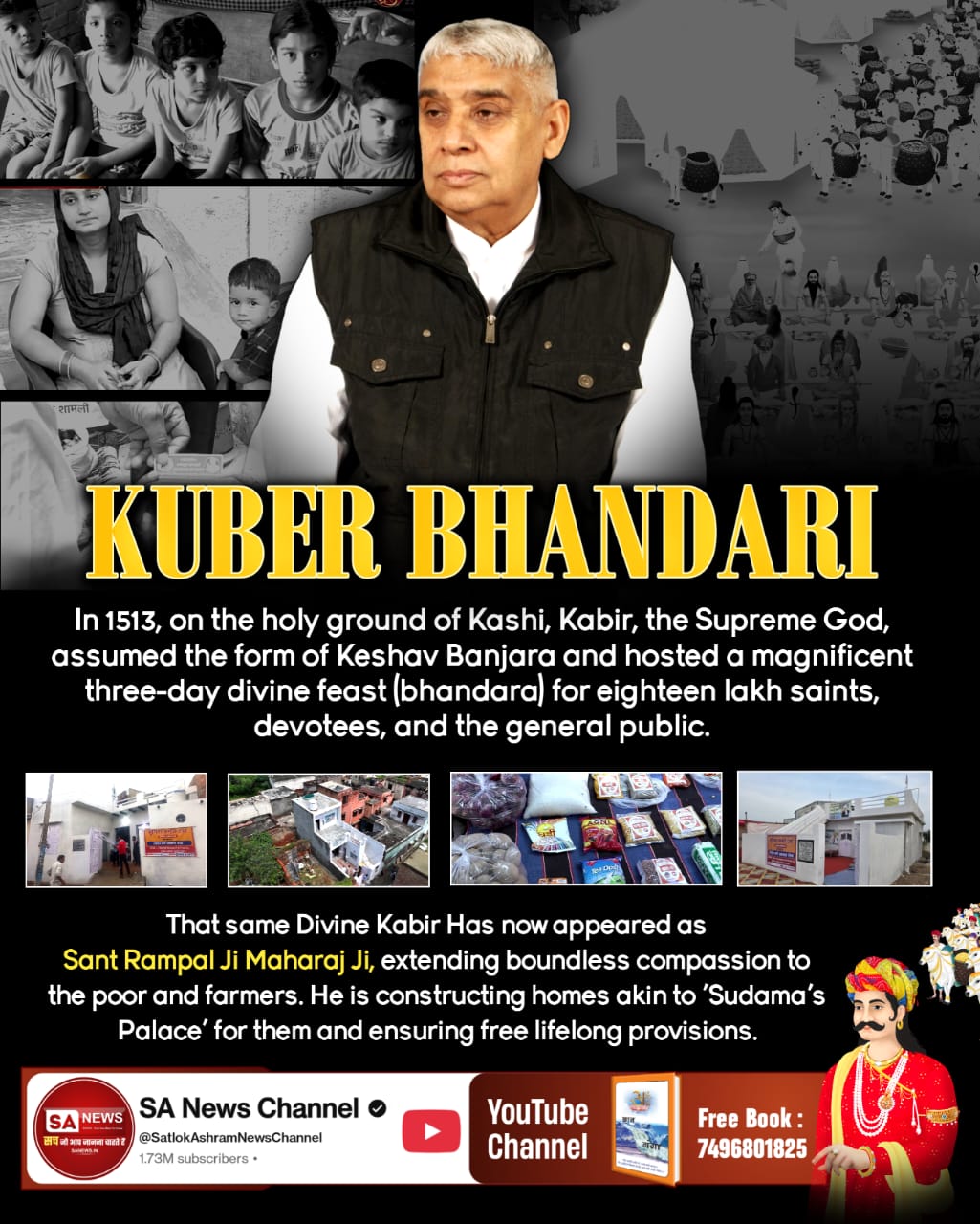 #आयाहै_आयाहै_केशोबंजारा #DivyaDharmaYagyaDiwas #दिव्य_धर्म_यज्ञ_दिवस #miracles #Bhandara #feast #langar #trending #photooftheday #kashi #banarasi #UP #kabir #KabirisGod #SantRampalJiMaharaj #SatlokAshram #trendingreels #trend #AnnapurnaMuhim #SaNewsChannel KESHO BANJARA, HAS ARRIVED, BRINGING IMMENSE WEALTH. In Kashi, Kabir Parmatma performed divine acts. He organized a grand feast (bhandara) for 1.8 million saints, holy men, and other people, and also gave each of them a blanket (dohar) and a gold coin. That very Kuber Bhandari (custodian of wealth) Has returned to Earth today. Today, Sant Rampal Ji Maharaj Ji Has proven that the same Kabir Parmatma Has returned to save everyone, by providing crores worth of pipes and heavy motors to the struggling farmers of Haryana.