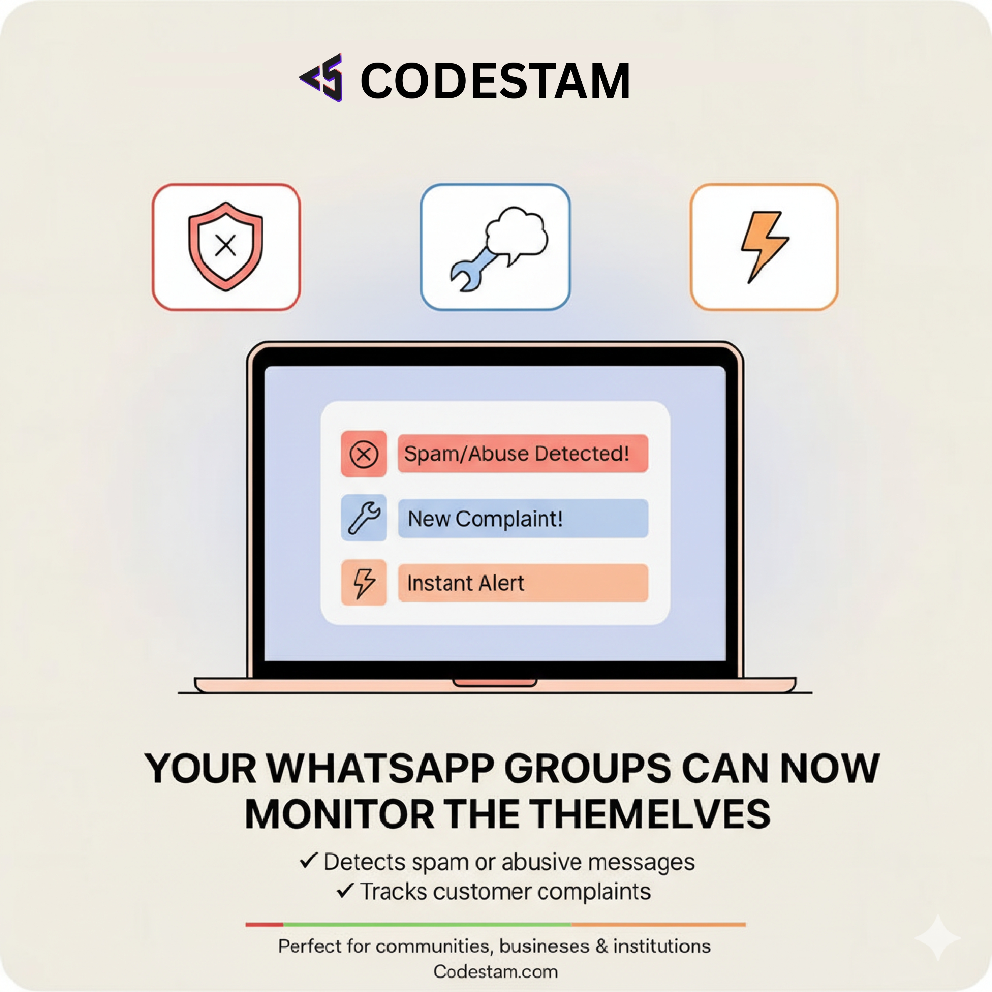 Your WhatsApp groups can now monitor themselves. ✔ Detects spam or abusive messages ✔ Tracks customer complaints ✔ Alerts you instantly Perfect for communities, businesses & institutions. #AIForBusiness #GroupMonitoring