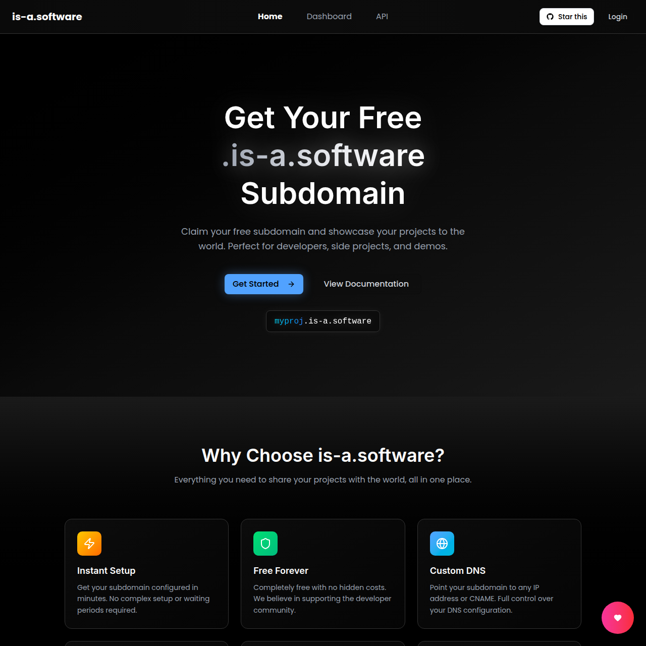 🚀 Just finished building the http://is-a.software dashboard! Easily add a cool custom URL to your project simple, fast, and free. It’s fully open-source too! 🧑💻 🔗 https://is-a.software 💻 https://github.com/is-a-software/is-a-software