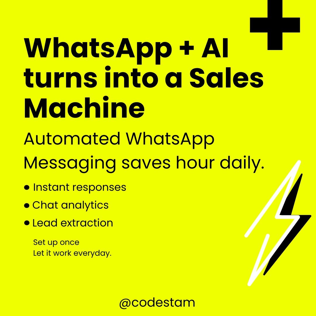 WhatsApp + AI = Sales Machine Automated WhatsApp messaging saves hours daily. Instant responses Chat analytics Lead extraction Set it up once → Let it work every day. . . . . #AutomationTools #SmartBusiness