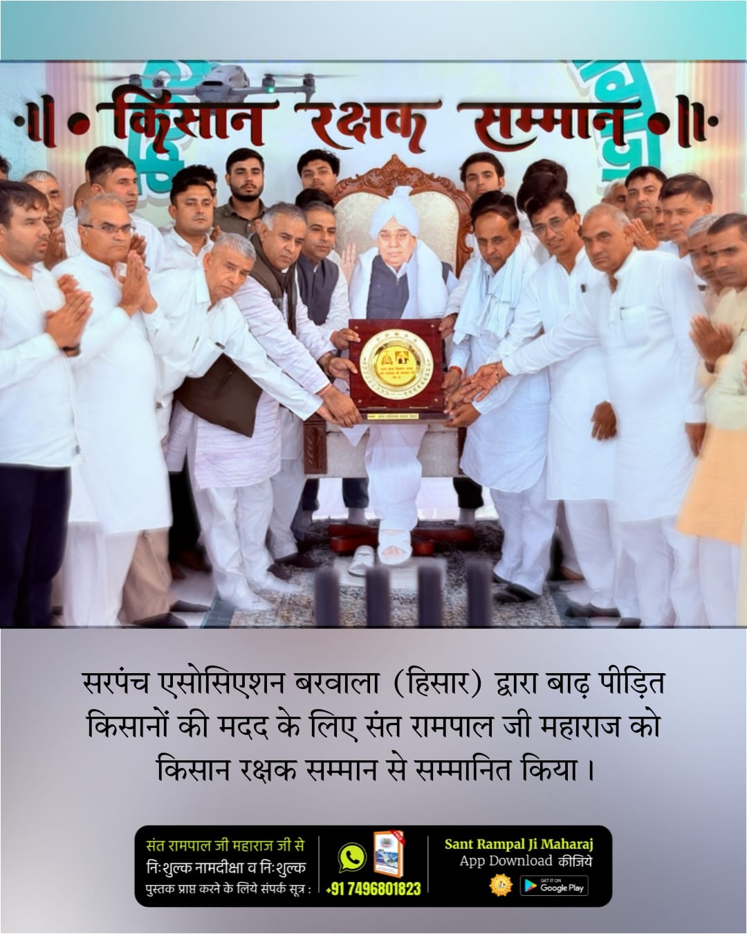 #किसान_रक्षक_सम्मान IGRKISAN RAKSHAK SAMMAN आगा Gram Panchayat Sarsaud (Hisar) honored Sant Rampal Ji Maharaj with a memento for his miraculous aid. The Panchayat stated that his help uplifted the shattered morale of the farmers. पंचायत पुनिया रपंच एसोसिएशन तस्वाला द्वारा शुभचिंतक एवं जगत क तत्वदशी संत रामपाल जी महारा To receive free Initiation and spiritual books by Sant Rampal Ji Maharaj Ji, message us on WhatsApp: +917496801823 Download our Official App Sant Rampal Ji Maharaj GET IT ON Google Play #rohtak #haryana #hisar #barwala #socialreformer #heaven #AnnapurnaMuhim_SantRampalJi #socialservices