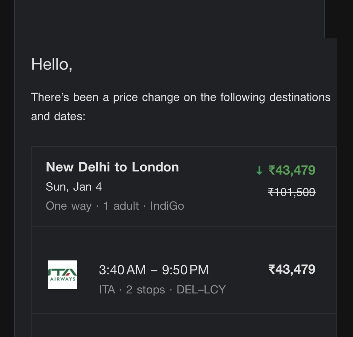 ๐จ Imagine waking up to thisโฆ A New Delhi โ London ticket dropping from โน1,01,509 to just โน43,479 โ Yes, more than 50% cheaper. Yes, on the same route. Yes, within hours. And people wonder why airline companies get nervous when platforms like Nomadiq start tracking fares in real time. ๐โ๏ธ This is exactly the problem weโre solving: โ Travellers paying unpredictable, fluctuating prices โ Hours wasted refreshing search results โ Zero transparency in how fares move โ๏ธ Nomadiq Smart Booking automatically locks your ticket at the lowest price drop โ๏ธ Users save BIG โ๏ธ Airlines KNOW they can no longer hide behind volatility The travel industry is changing. AI is rewriting the rules. And consumers are finally winning. If a flight can drop โน58,000 overnight, imagine the savings when millions of travellers use Nomadiq. The tension is real. The disruption is louder. And weโre just getting started. #TravelTech #AI #Startup #Nomadiq #SmartBooking #Airfare #Innovation #Disruption #FlightDeal