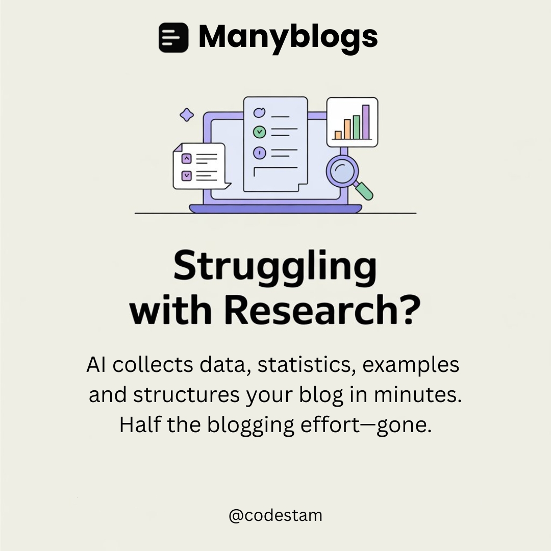 Struggling with research? AI collects data, statistics, examples and structures your blog in minutes. Half the blogging effortโgone. . . . . #AIResearch #ContentAutomation