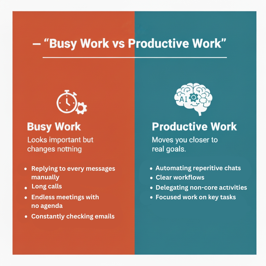 Most people are not overworked — they’re over-busy. Here’s the difference between being busy and being productive. Which side are you on today? #ProductivityTips #WorkSmart #EntrepreneurLife