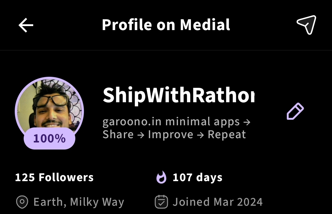 Do you think medial can bring you financial freedom? I say yes. Just a few weeks ago, I had 0 followers. Now, all because of building in public, we've achieved 125. So be consistent because everyone else is distracted.