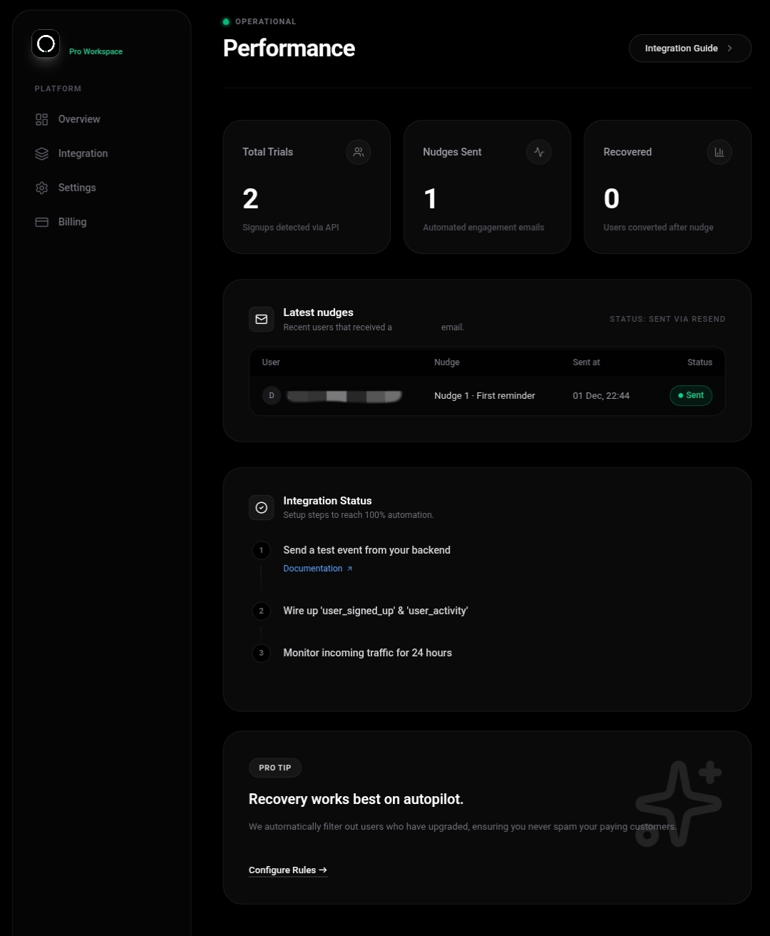 Day 6~7 of building a startup from scratch using AI > Yesterday I did nothing much but redesigned the whole dashboard UI > Today I added a new feature where you can see which user recieved nudge with the timing and numbers I was busy from the last 2 days that's why nothing much