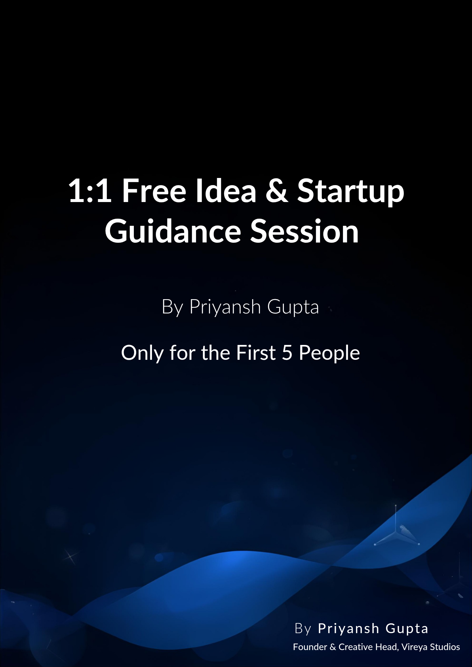 🌟 1:1 Idea & Startup Guidance Session — By Priyansh Gupta I’m offering 5 free personal consultancy sessions to help creators, early founders, and anyone with a unique idea who needs direction. What you’ll get: 🧭 Clarity on your idea 🎯 What makes your concept unique 🧱 A simple roadmap to execute 🎨 Creative & storytelling guidance 🚀 Practical insights from real development experience Who is it for? • New founders • Creators with fresh ideas • Anyone stuck on “what do I do next?” ⚠️ This is not a Vireya Studios free service — it’s me personally giving back to upcoming builders. How to apply: DM “Session” — I’ll pick the first 5. Let’s build something meaningful. — Priyansh Gupta Founder & Creative Head, Vireya Studios