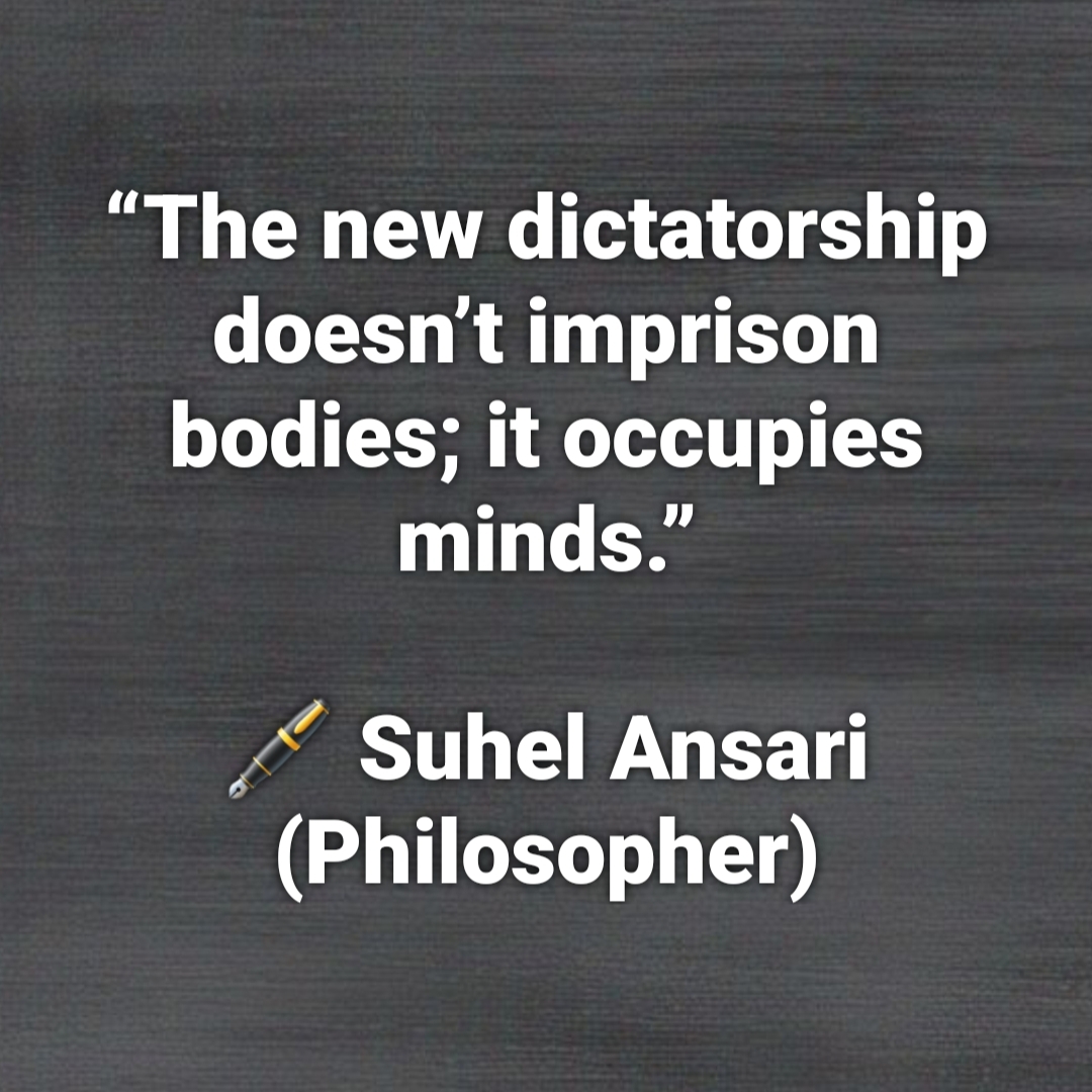 “The new dictatorship doesn’t imprison bodies; it occupies minds.” 🖋️ Suhel Ansari