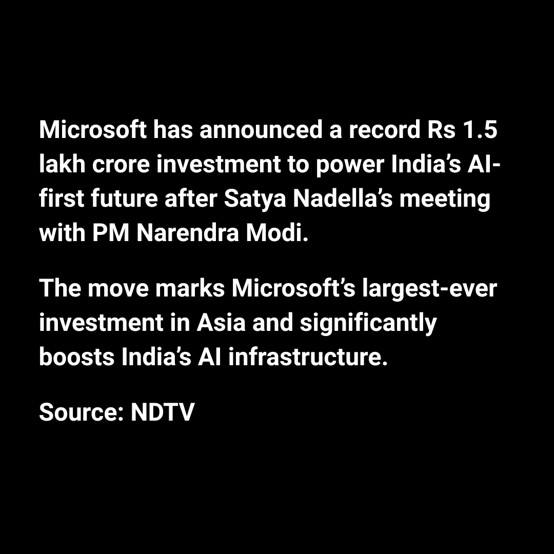 Microsoft Announces Record Rs 1.5 Lakh Crore Investment in Indiaโs AI Future