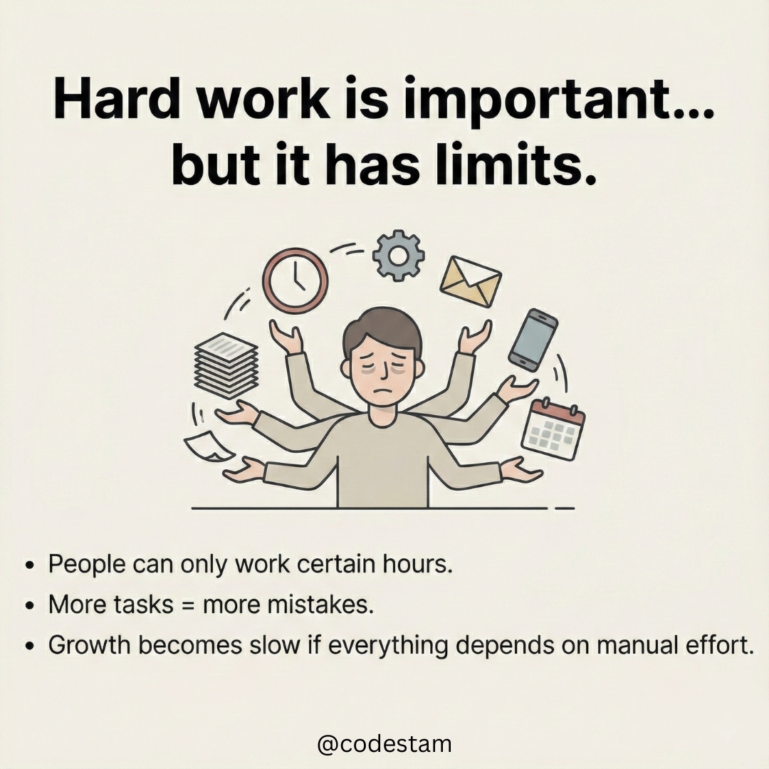 Hard work is important. But workflows are what actually scale a business. Fix systems → fix everything. #EntrepreneurMindset #BusinessTips