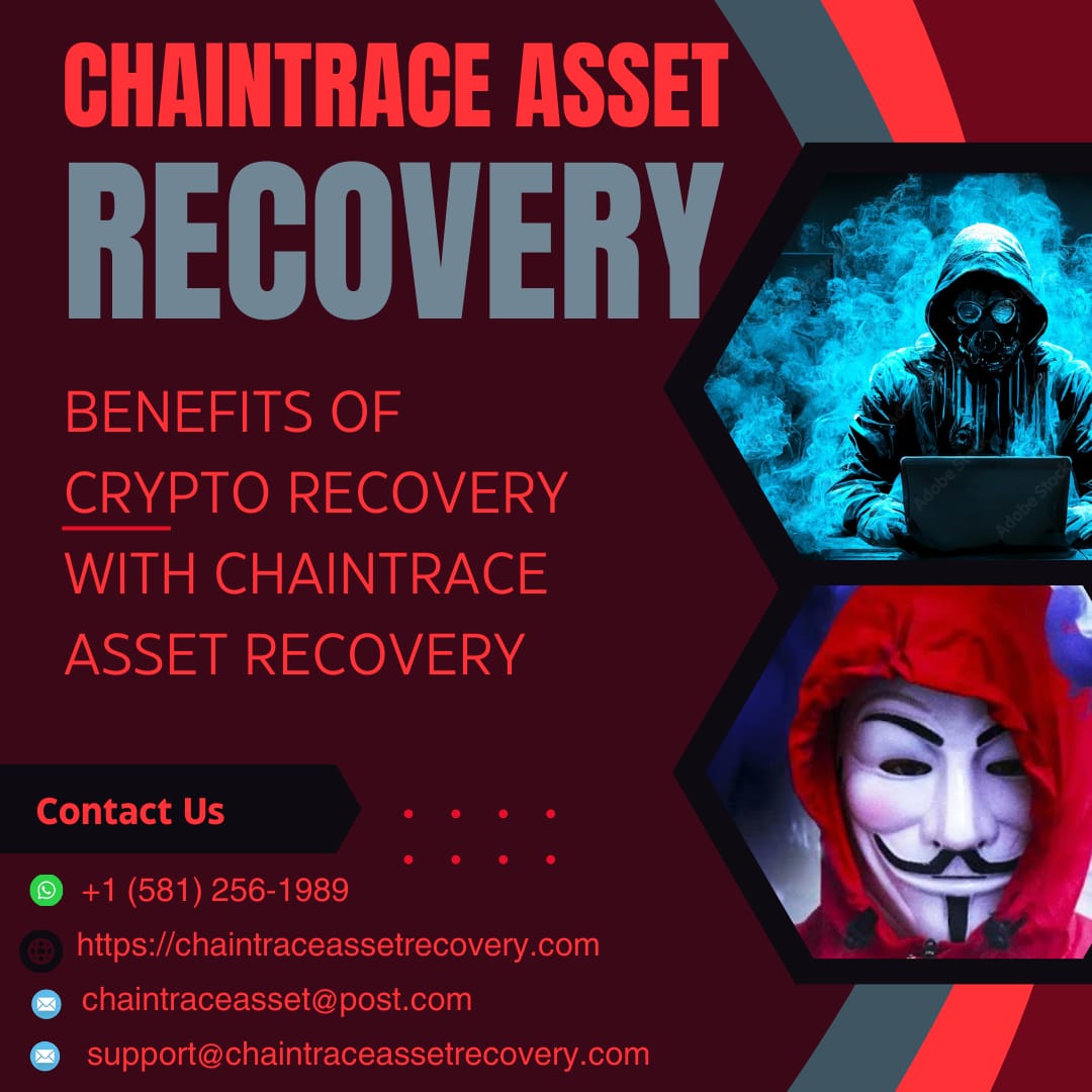 I am writing to express my deepest gratitude to the team at CHAINTRACE ASSET RECOVERY for their exceptional assistance in recovering my lost bitcoin. As someone who has been involved in the cryptocurrency space for some time, I was devastated when I discovered that my bitcoin had been compromised due to a security breach. The loss was substantial, and I feared that I would never see my investment again. However, after conducting extensive research and reaching out to various recovery services, I was referred to CHAINTRACE ASSET RECOVERY. From the initial consultation to the final recovery, the team at CHAINTRACE demonstrated a high level of professionalism, expertise, and dedication to their work. They took the time to understand my situation, explained the recovery process in detail, and provided me with regular updates throughout the entire procedure. Thanks to the tireless efforts of the CHAINTRACE team, I was able to recover a significant portion of my lost bitcoin. Their cutting-edge technology, combined with their in-depth knowledge of the cryptocurrency market, enabled them to track down and recover my assets in a relatively short period. The entire process was seamless, and I was impressed by the level of transparency and communication displayed by the team. I would highly recommend CHAINTRACE ASSET RECOVERY to anyone who has fallen victim to cryptocurrency theft or loss. Their services are top-notch, and their commitment to helping individuals recover their assets is unparalleled. All thanks to CHAINTRACE ASSET RECOVERY for helping me recover my lost bitcoin; I can now breathe a sigh of relief knowing that my investment is secure. In conclusion, I would like to extend my sincere appreciation to the entire CHAINTRACE team for their outstanding work. Their expertise, professionalism, and dedication to asset recovery are a testament to their exceptional service. If you find yourself in a similar situation, do not hesitate to reach out to CHAINTRACE ASSET RECOVERY – WHATSAPP: +1 1581 256 1989 EMAIL: chaintraceasset@post.com WEBSITE: https://chaintraceassetrecovery.com/ TELEGRAM : https://t.me/CHAINTRACE_ASSET_RECOVERY they are the go-to experts in cryptocurrency recovery.
