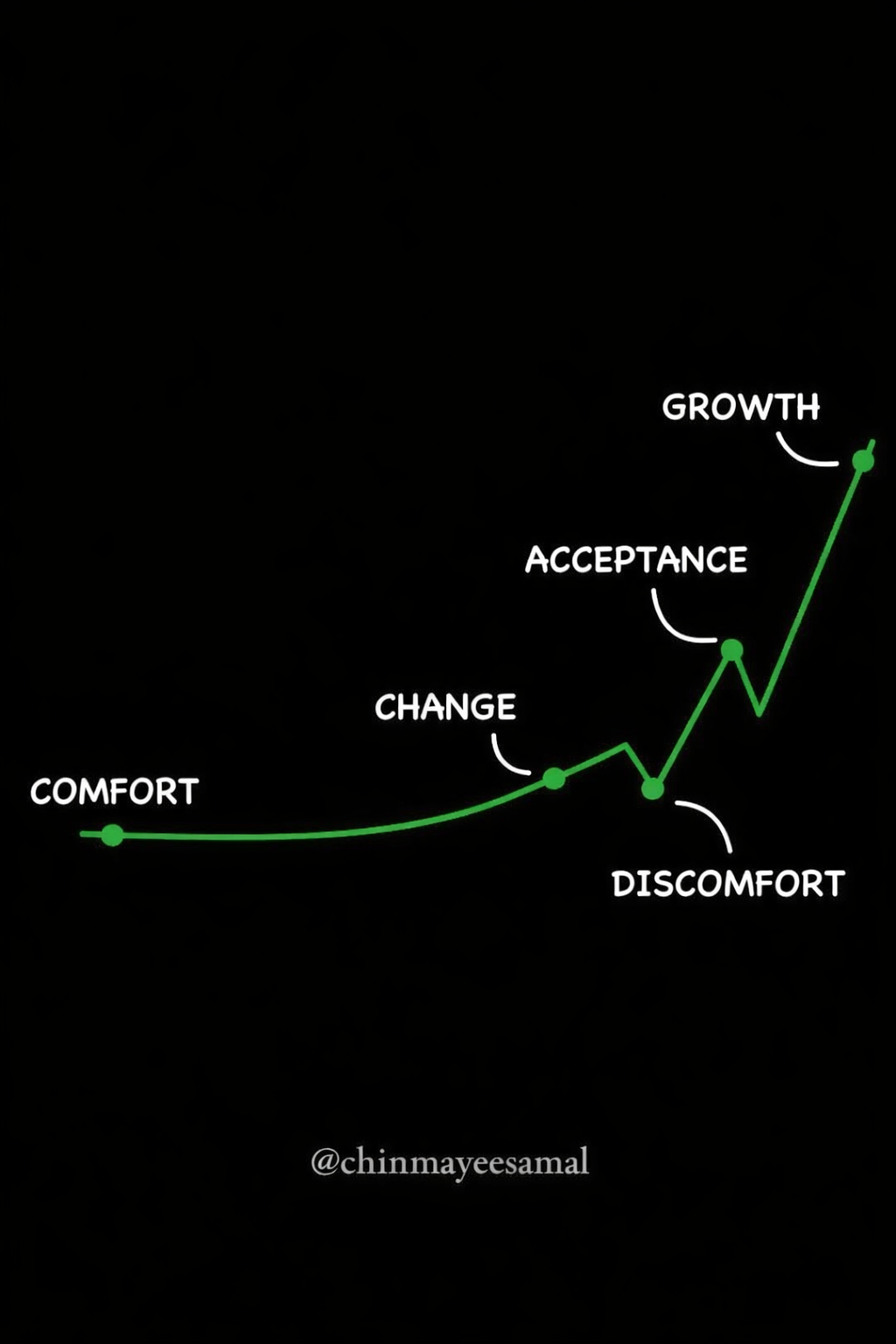 Growth never starts in comfort. It starts the moment you choose change. 🚀 Follow @chinmayeesamal . . . #mindsetmatters #balancedlife #dailywisdom #selfdevelopment #chinmayeesamal