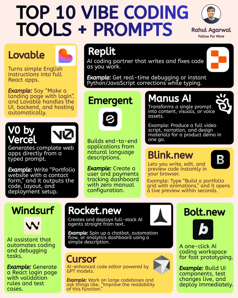 People know vibe tools, but struggle to use them. I've prepared a solid framework that works across all platforms. 1) đđ˛đłđśđťđ˛ đđľđ˛ đ˝đżđźđąđđ°đ đśđť đźđťđ˛ đđ˛đťđđ˛đťđ°đ˛ (5 đşđśđťđđđ˛đ) Be brutally simple. Your app must do ONE thing only. đđźđżđşđŽđ: âBuild a small web app that does đŤ, with đ, đ, and đ as core features.â đđ đŽđşđ˝đšđ˛: âA portfolio website with a homepage, project grid, and a contact form.â _____________ 2) đŞđżđśđđ˛ đŽ đ°đšđ˛đŽđż, đđđżđđ°đđđżđ˛đą đ˝đżđźđşđ˝đ (5â10 đşđśđťđđđ˛đ) This matters more than the tool you pick. đ§đ˛đşđ˝đšđŽđđ˛: âBuild a [type of app] with: ⢠Feature A ⢠Feature B ⢠Feature C Include authentication if needed, responsive layout, and deployment instructions.â This prompt works in Lovable, Emergent, Rocket, everywhere. _____________ 3) đđ˛đťđ˛đżđŽđđ˛ đđľđ˛ đłđśđżđđ đđ˛đżđđśđźđť (2â10 đşđśđťđđđ˛đ) Paste your prompt into ANY vibe coding platform. Whatever tool you choose will give you: ⢠Code skeleton ⢠UI components / pages ⢠Basic functionality ⢠Optional deployment setup đđźđťâđ đ˝đ˛đżđłđ˛đ°đ đśđ. đđđđ đ´đ˛đ đđľđ˛ đłđśđżđđ đąđżđŽđłđ. _____________ 4) đĽđđť đđľđ˛ đŽđ˝đ˝ & đśđťđđ˝đ˛đ°đ đđľđ˛ đźđđđ˝đđ (10â20 đşđśđťđđđ˛đ) Open the generated code in any editor (Replit / Cursor / local VS Code). Look for: ⢠Basic layout working? ⢠Buttons clickable? ⢠API calls functional? ⢠Any errors in the console? This quick review guides your next prompt. _____________ 5) đđđ˛đżđŽđđ˛ đđśđđľ đđşđŽđšđš, đđŽđżđ´đ˛đđ˛đą đ˝đżđźđşđ˝đđ (đšđźđźđ˝) Always make đşđśđ°đżđź đ°đľđŽđťđ´đ˛đ, not giant ones. đđ đŽđşđ˝đšđ˛ đ˝đżđźđşđ˝đđ: ⢠âFix the console error in ContactForm.js.â ⢠âImprove the layout spacing on the homepage.â ⢠âAdd validation to the email field.â 1 change â test â next change. This loop is universal across all platforms. _____________ 6) đđ˛đ˝đšđźđ đđľđ˛ đŽđ˝đ˝ (5â20 đşđśđťđđđ˛đ) All tools support either automatic or external deployment. Two paths: ⢠đđđđź-đąđ˛đ˝đšđźđ (đśđł đđźđźđš đđđ˝đ˝đźđżđđ đśđ): -> VO by Vercel / Rocket / Bolt â 1-click deploy. ⢠đ đŽđťđđŽđš đąđ˛đ˝đšđźđ: Export â GitHub â Vercel / Netlify. -> đŞđźđżđ¸đ đłđźđż đ˛đđ˛đżđ đđźđźđš. _____________ 7) đŚđľđŽđżđ˛ + đśđđ˛đżđŽđđ˛ đŻđŽđđ˛đą đźđť đłđ˛đ˛đąđŻđŽđ°đ¸ Ship the link, collect feedback, and improve. Simple loop: 1. Fix bugs 2. Add 1 new feature 3. Re-deploy Repeat until done. _____________ đđśđťđŽđš đđśđşđ˝đšđśđłđśđ˛đą đ°đľđ˛đ°đ¸đšđśđđ đđźđ đ°đŽđť đłđźđšđšđźđ đłđźđż đŽđťđ đđźđźđš 1. Write a tight idea + 3-4 core features. 2. Choose the tool that matches that need (frontend, full-stack, agents). 3. Create a precise prompt: pages, auth, data flow, deployment. 4. Generate scaffold, run locally, and test critical flows. 5. Use the toolâs AI to fix bugs and add tests. 6. Add demo content and visuals. 7. Deploy and configure env variables. 8. Collect feedback and iterate. â Repost for anyone who is building apps with vibe coding tools.