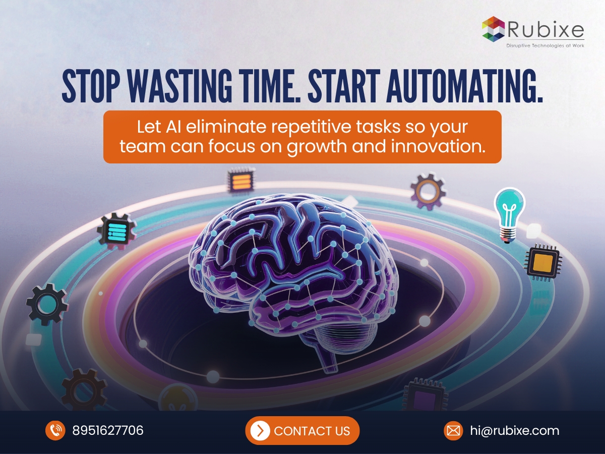 Stop Wasting Time. Start Automating. Rubixe’s AI Automation solutions eliminate repetitive tasks and streamline workflows, enabling teams to focus on innovation, efficiency, and business growth. Work smarter with intelligent automation built for scale. Get Expert Guidance Phone: 8951627706 Email: hi@rubixe.com Website: https://rubixe.com/