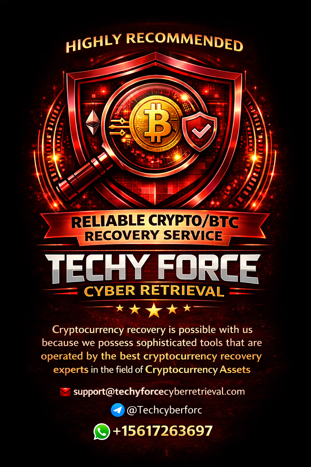 CONTACT THE BEST ETHEREUM & USDT RECOVERY EXPERT- FOR HIRE, VISIT TECHY FORCE CYBER RETRIEVAL As the world becomes increasingly digital, the threat of cryptocurrency scams continues to loom large. In my case, I fell victim to such a scam in 2025, losing a substantial sum of $445,000. The feeling of loss and frustration that followed was overwhelming, with many experts dismissing my chances of recovery due to the irreversible nature of cryptocurrency transactions and the anonymity that comes with them. However, I was fortunate to come across Techy Force Cyber Retrieval, a reputable recovery service that specializes in retrieving lost or stolen cryptocurrency. Initially, I was apprehensive, given the numerous horror stories of recovery services that turn out to be scams themselves. But after conducting thorough research and speaking with the team at Techy Force, I was impressed by their transparency, professionalism, and commitment to helping victims like myself. What struck me was the team's willingness to listen to my situation and provide a clear, step-by-step explanation of their recovery process. They walked me through the various methods they employ to track and retrieve lost funds, and their expertise in navigating the complexities of cryptocurrency transactions was evident. The team's dedication to their craft and their passion for helping victims of scams like mine was genuinely reassuring. Despite the odds, I decided to take a chance and work with Techy Force Cyber Retrieval. I must say that I was pleasantly surprised by the outcome. The team's expertise and perseverance paid off, and I was able to recover a significant portion of my lost funds. The experience was a sobering reminder of the importance of vigilance and caution when dealing with cryptocurrency, but it also highlighted the value of having a reliable and trustworthy recovery service like Techy Force Cyber Retrieval. In retrospect, I would advise anyone who finds themselves in a similar situation to approach recovery services with caution, but not to dismiss the possibility of recovery altogether. With the right expertise and support, it is possible to recover lost funds, even in the face of seemingly insurmountable odds. My experience with Techy Force Cyber Retrieval has been a testament to the importance of persistence and the value of seeking help from reputable professionals in the field. Hire Techy Force Cyber Retrieval On WhatsApp https://wa.link/kiwcir