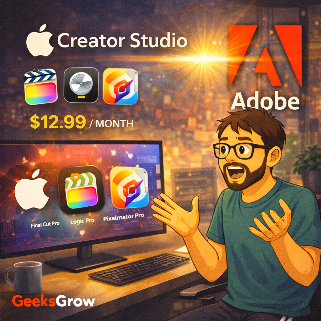 Apple's new Creator Studio is a direct challenge to Adobe Creative Cloud. It offers a tightly integrated, lower-cost suite for creators using Mac and iPad. With faster rendering and simpler workflows, Apple aims to redefine creative productivity. Adobe still leads in advanced tools, but Apple is betting on accessibility and value. The competition signals a shift in how creative professionals will choose their tools in 2026. Read the full analysis here: https://geeksgrow.com/blog/apple-creator-studio-vs-adobe-creative-cloud-who-wins-in-2026/ The creative future belongs to those who balance innovation, speed, and usability.