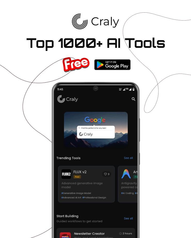 Craly โ Indiaโs First AI Discovery App Discover the right AI tools. Faster. Smarter. Craly is Indiaโs first AI discovery application that brings 1,000+ AI tools and 100+ curated workflows into one simple, organized platform. With so many AI tools ava
