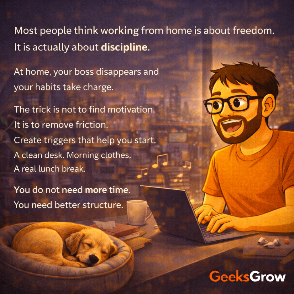Working from home is not a test of comfort. It is a test of consistency. Discipline matters more than setup. You do not need a fancy desk or a perfect view. You need clear routines and personal accountability. Structure creates freedom. Start your day with intention, end it with closure, and protect your mental separation between work and home. Once you do that, remote work becomes your productivity advantage.
