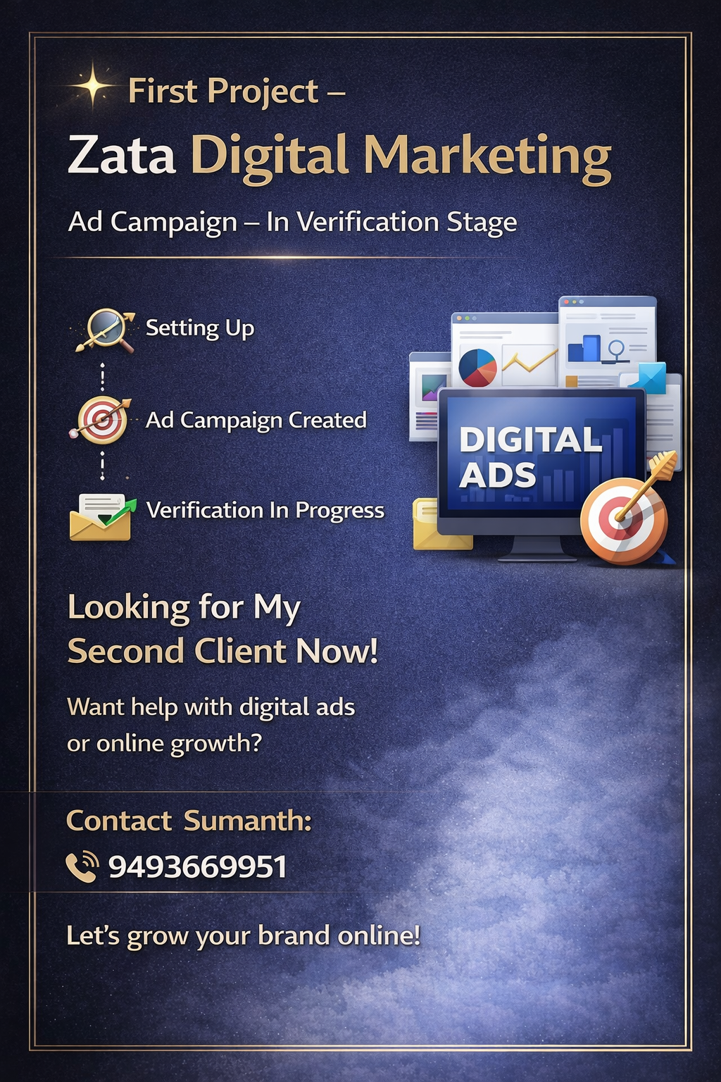 Let’s Grow Your Brand Together Every brand starts small — but with the right digital strategy, it can reach thousands of people online. 🚀 I help businesses grow through: ✅ Powerful Ad Campaigns ✅ Creative Social Media Marketing ✅ Smart SEO for better reach ✅ Engaging Email Marketing Your first step to success is showing up online — and I can help you make that impact. Let’s build your online presence and make your brand shine ✨ 📞 Contact Sumanth: 9493669951 #DigitalMarketing #OnlineGrowth #SocialMediaMarketing #AdCampaigns #BrandBuilding #Entrepreneur #MarketingAgency