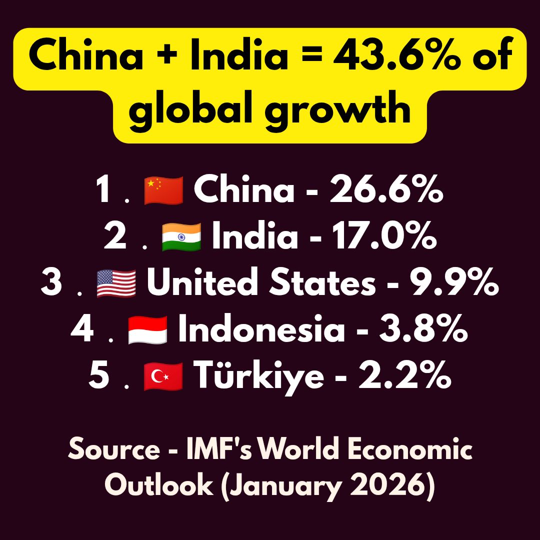 The latest IMF stats are out. the Asia-Pacific region is projected to contribute nearly 60% (59.4%) of total global GDP growth in 2026. This means that for every $10 of economic growth the world generates, roughly $6 comes from Asia. But numbers on a spreadsheet don’t always mean quality of life on the street. 1️⃣ GDP is NOT the Human Development Index (HDI) 🚫 GDP measures production. HDI measures people. India may be #2 in growth contribution (17%), but we still lag in healthcare, literacy, and air quality. Growth is useless if we are breathing toxic air or living in extreme inequality. The Goal: Shift from "How much are we producing?" to "HOW WELL ARE WE LIVING?" 2️⃣ The China Lesson: Scale + Execution 🇨🇳 China contributes 26.6% to global growth - nearly 10% more than India. The Secret: They didn’t just grow; they built world-class infrastructure and a dominant green-tech supply chain. India's Path: We must move beyond "potential" to aggressive EXECUTION in manufacturing and urban planning. 3️⃣ The American Warning: Radicalism is Costing the West - America is still at 9.9%, but the world sees the cracks. Extreme internal polarization and radical thought processes are paralyzing policy. While the West debates culture wars, the East is building the future. PRACTICALITY > IDEOLOGY. Always. 4️⃣ The Climate Mandate 🍃 We cannot grow the old-fashioned way. China is already the world leader in solar and EVs. India must decouple growth from carbon. If we grow by destroying our soil and water, we aren't "developing" - we are just liquidating our children's future. Being an economic powerhouse is a responsibility, not just a rank. Let’s build an India where the HDI climbs as fast as the GDP.