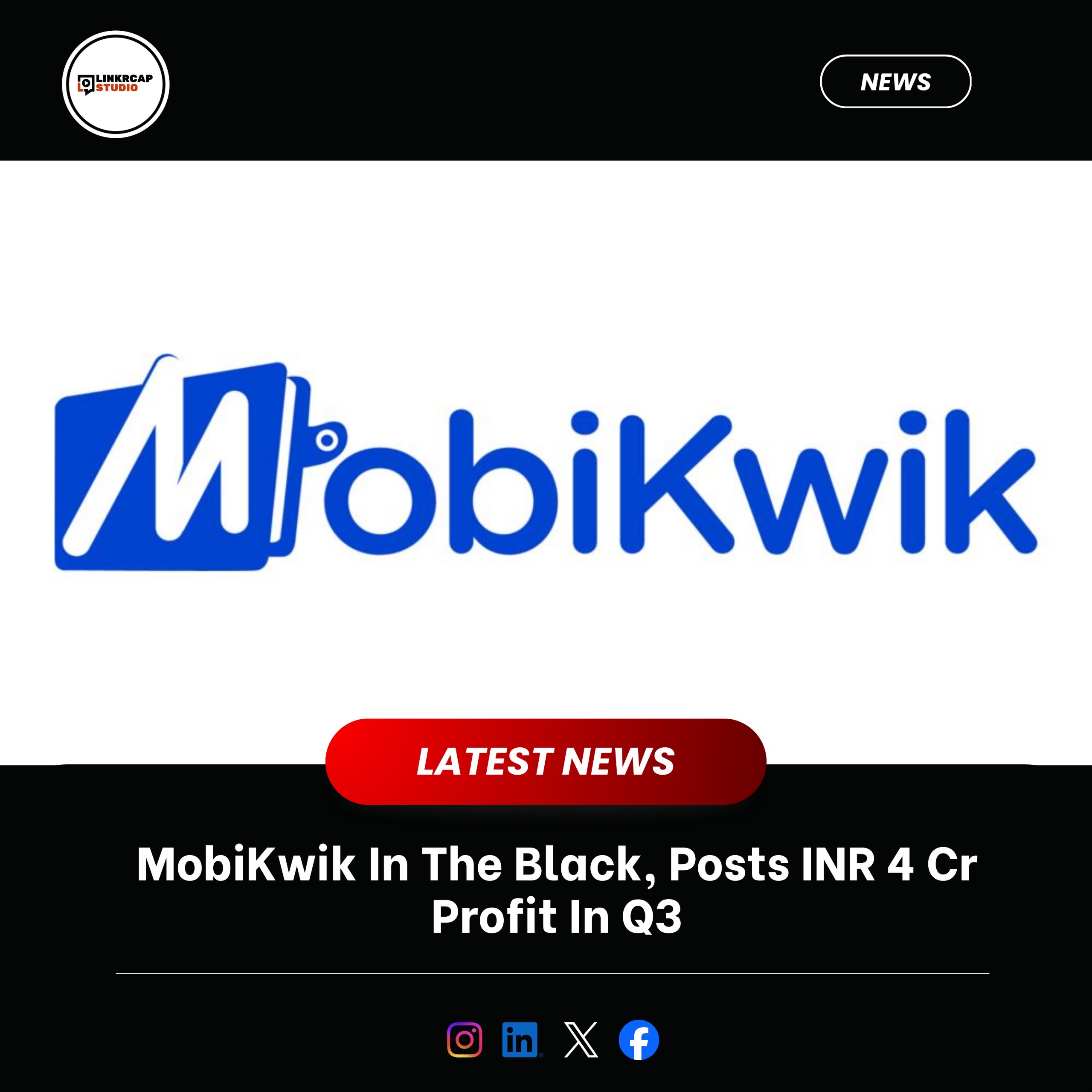 MobiKwik recorded a consolidated net profit INR 4 Cr as against a loss of INR 55.3 Cr in the same quarter last year. The company had reported a loss of INR 28.6 Cr in the preceding September quarter. Its operating revenue grew 7.2% to INR 288.9 Cr in Q3 FY26 from INR 269.5 Cr in Q3 FY25. #Mobikwik #Investment #Founders #Entrepreneurship #LinkrcapStudio