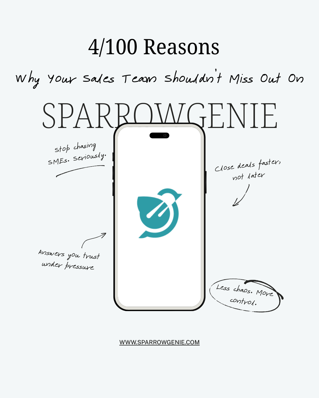 You don't have the time to check out a live demo of 30 minutes. But you have time to manually sit through the entire RFP, panic your team, make it a chaos, waste a week, and then submit the proposal, though by that time, the opportunity has expired already. Hughh! Check out our demo, get the platform (since, of course, you'll love the demo!), implement it while our team will be your biggest cheerleaders & 24/7 support system, experience the magic of Genie, let your teams breathe while excelling at the RFPs, and crack 5x deals 10x times better. Are you convinced yet? Or, should we convince you more? Come on! Book a demo, grab your slot, get the tool, and thrive like no other! https://www.sparrowgenie.com/ #SparrowGenie #RFPTool #LiveDemo