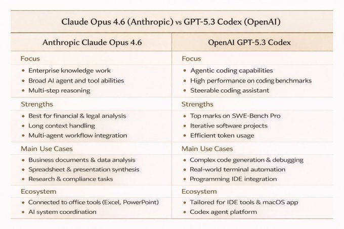 When I have children, I will tell them a story. On Feb 5, 2026, Opus 4.6 and Codex 5.3, two of the best models, launched within 30 minutes of each other. It was pure chaos. Opus 4.6 was expected, but Codex 5.3 was a surprise and it absolutely nailed it. Which one u think works best fr u?