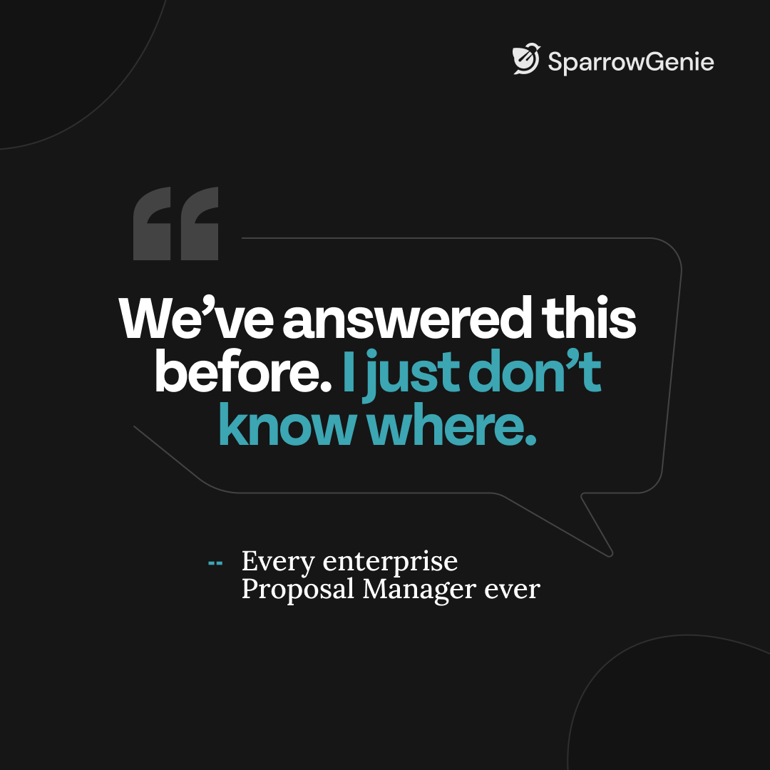 ๐๐โ๐ ๐ฒ:๐ฏ๐ฌ ๐ฃ๐ . ๐ก The deadline is ๐๐ผ๐บ๐ผ๐ฟ๐ฟ๐ผ๐. Someone swears this exact question came up in the last RFP. ๐ You open three folders. Search Slack. Scroll through an old doc named FINAL_v7_reallyfinal. The answer exists. You know it does. But knowing isnโt the same as finding. ๐ง๐ต๐ถ๐ ๐ถ๐ ๐ต๐ผ๐ ๐ด๐ผ๐ผ๐ฑ ๐๐ฒ๐ฎ๐บ๐ ๐น๐ผ๐๐ฒ ๐๐ถ๐บ๐ฒ. Not because they donโt have answers. But because their answers are scattered, outdated, or trapped in someone elseโs head. ๐ก๐ผ๐ ๐ถ๐บ๐ฎ๐ด๐ถ๐ป๐ฒ ๐ฎ ๐๐ผ๐ฟ๐น๐ฑ ๐๐ต๐ฒ๐ฟ๐ฒ ๐ฒ๐๐ฒ๐ฟ๐ ๐ฎ๐ฝ๐ฝ๐ฟ๐ผ๐๐ฒ๐ฑ ๐ฟ๐ฒ๐๐ฝ๐ผ๐ป๐๐ฒ ๐ถ๐ ๐ฒ๐ ๐ฎ๐ฐ๐๐น๐ ๐๐ต๐ฒ๐ฟ๐ฒ ๐๐ผ๐ ๐ฒ๐ ๐ฝ๐ฒ๐ฐ๐ ๐ถ๐ ๐๐ผ ๐ฏ๐ฒ. ๐ฆ๐ฒ๐ฎ๐ฟ๐ฐ๐ต๐ฎ๐ฏ๐น๐ฒ. ๐ฉ๐ฒ๐ฟ๐ถ๐ณ๐ถ๐ฒ๐ฑ. ๐ฅ๐ฒ๐ฎ๐ฑ๐ ๐๐ผ ๐๐๐ฒ. No guessing. No chasing. No late-night archaeology. Thatโs when RFPs stop feeling chaotic. Thatโs the problem SparrowGenie was built to quietly solve. Want to see how? ๐๐ ๐ฝ๐ฒ๐ฟ๐ถ๐ฒ๐ป๐ฐ๐ฒ ๐ฎ ๐น๐ถ๐๐ฒ ๐ฑ๐ฒ๐บ๐ผ ๐ฎ๐ป๐ฑ ๐๐ฒ๐ฒ. ๐ https://tinyurl.com/22mre3m6 #RFP #ProposalManager #ProposalChaos #RFPTool
