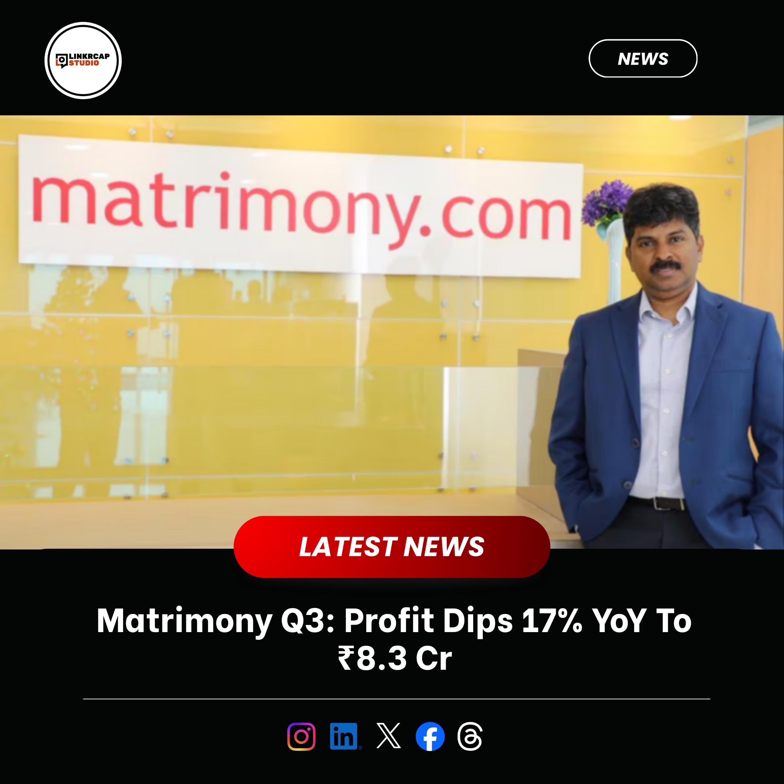 On a sequential basis, the company’s PAT rose 6% from ₹7.8 Cr in the previous quarter. Operating revenue remained flat, increasing 1% YoY to ₹113.2 Cr. Expenses grew 2% YoY during the quarter to ₹108.7 Cr #Matrimony #Funding #Founders #Entrepreneurship #LinkrcapStudio
