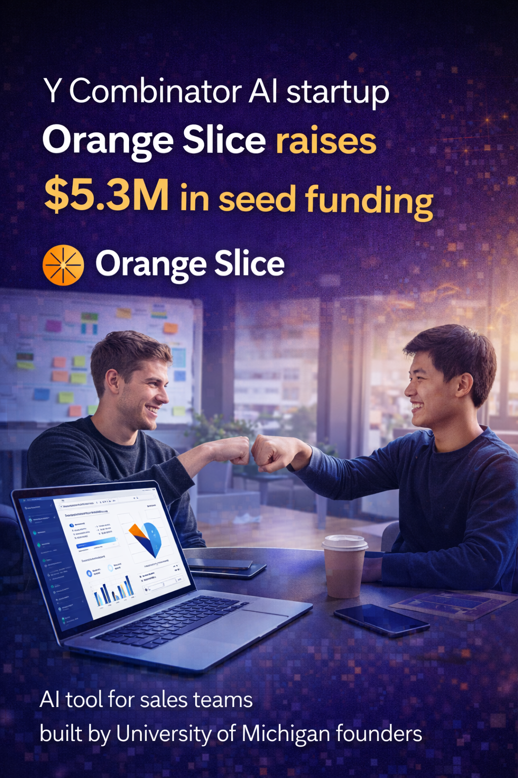 Y Combinator AI startup Orange Slice raises $5.3M in seed funding Two young founders from the University of Michigan built Orange Slice, an AI tool for sales teams, and secured $5.3 M in seed funding after graduating from YC, showing strong early-stage support for AI-led B2B tools.