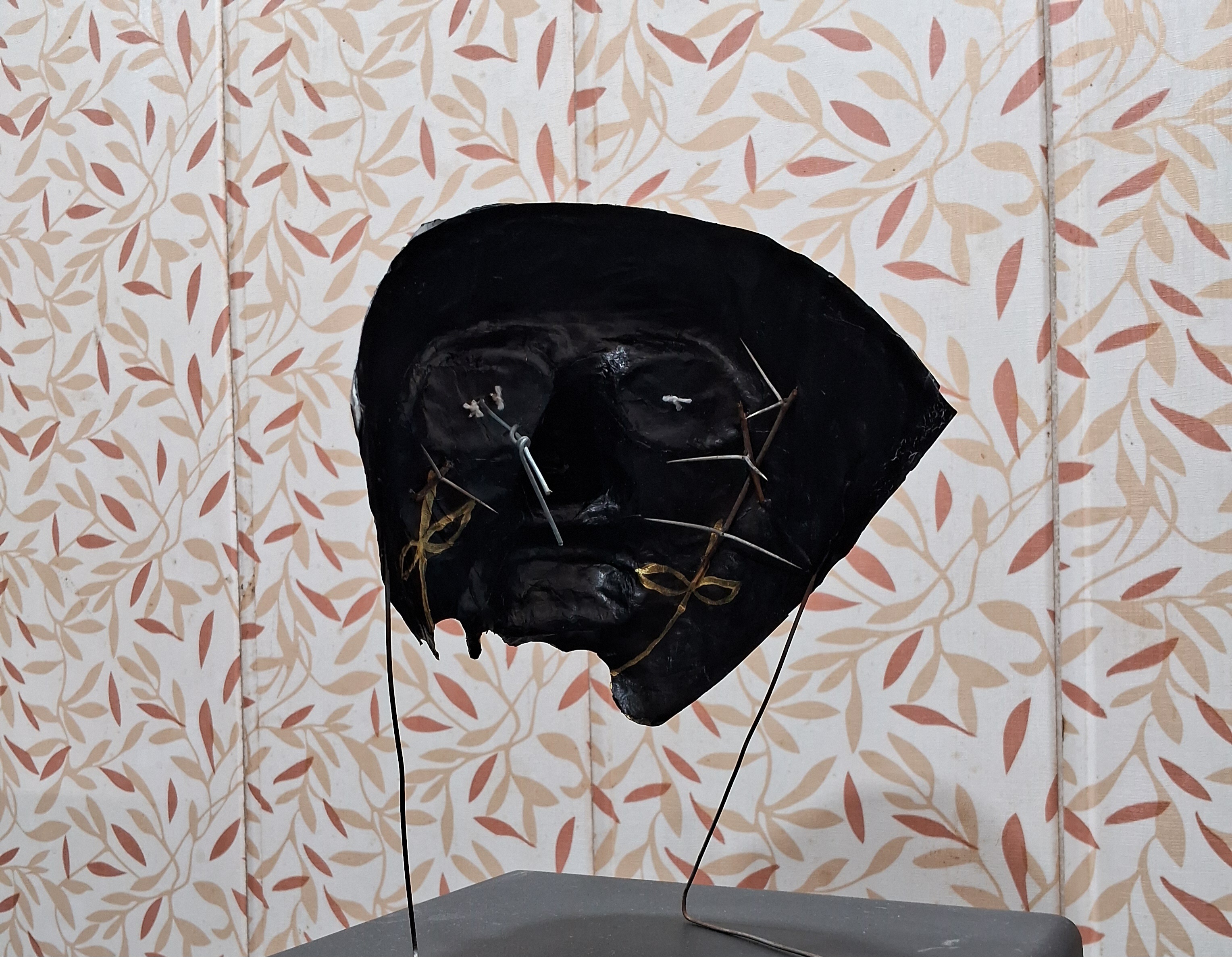 ● The artwork "NAKAAB" Explanation This artwork reveals the human intention. The flowers on outer side of face shows the showy happiness. Not the real. The button on the eye show. Humans are not raised the voice against the erroneous. Until it comes to them The thorns on inner side of the face shows the real feeling of a human now a day is full of negativity , hate towards others. The wire on the eye shows to break the fake wall over eyes The front side shows the fake representation of the situation and the inner or backside off the artwork shows the lots of echo are still need justice. People rape ,molest, exploit the women's and the poor people and murder them or crush their voice against when raised for justice or against wrong. This is my new work and Rate my work out of 10. How did you like my artwork