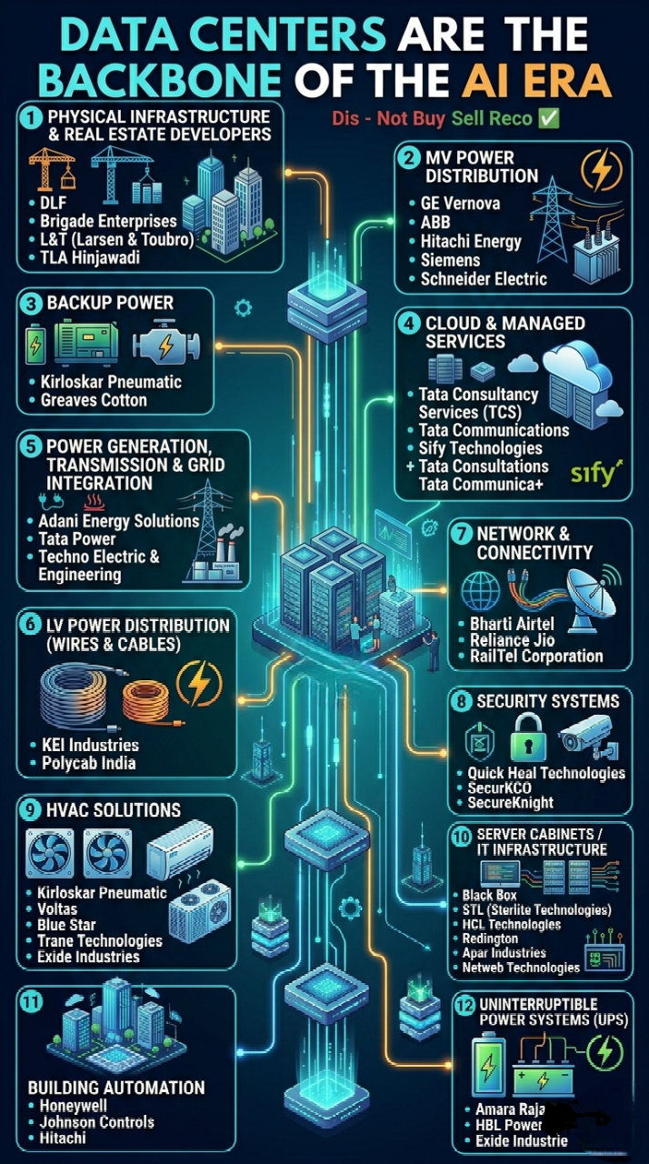 AI Runs on Cables – The Hidden Backbone of the AI Revolution Everyone talks about AI, data centers, and semiconductors… But very few talk about the real backbone — ⚡ Cables & Connectivity. AI doesn’t run in the cloud. It runs on physical infrastructure — and cables are the foundation of that infrastructure. 🔌 No Power Cables → No Electricity → No AI Computation 🌐 No Fiber Cables → No Data Transfer → No AI Scaling 🏗️ No Grid Modernisation → No Stable AI Expansion 🇮🇳 Key Indian Listed Cable Companies (AI Infrastructure Play) • Polycab • KEI Industries • RR Kabel • Finolex Cables • HFCL • Cords Cable • Dynamic Cables • Universal Cables • Paramount Communications 📊 Why This Sector Matters AI Growth = 📈 Data Center Expansion ⚡ Power Demand 🔋 Grid Upgradation 📡 Telecom & Fiber Expansion Just like the human body cannot function without nerves transmitting signals, AI infrastructure cannot function without cables transmitting power & data.