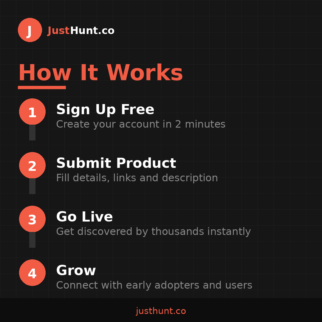 ๐ Your startup is ready. The world doesn't know it yet. List it on JustHunt.co โ India's free startup launchpad where founders get discovered by thousands of early adopters, investors, and tech enthusiasts every single day. No listing fees. No pay