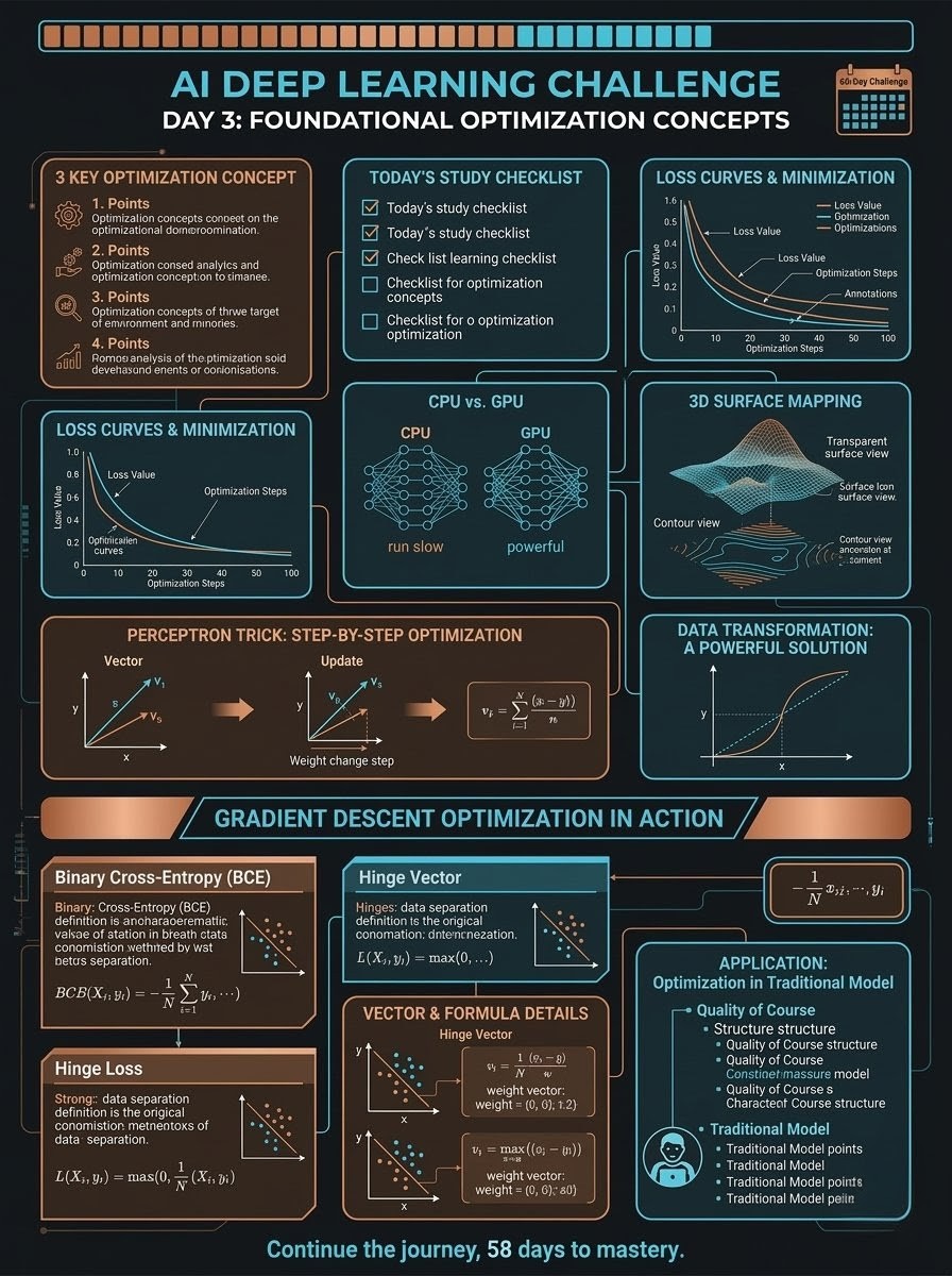 Day 3/60: "Perceptron ek Jugaad " Good morning my name is Anuj Tongse and, Today is day 3 of understanding Ai Deep learning Today was all about the "Perceptron jugaad(trick)" :-the actual mechanism that allows a model to learn from its mistakes. It's one thing to see a decision boundary; it's another to understand how it moves. What I covered today: Perceptron Tricks & Transformation: Understanding how weights and bias shift the line to classify points correctly. : Labeling Regions: How we mathematically define which side of the line is "Class O" vs. "Class 1" using the step function. The Reality Check :- While the Perceptron is the grandfather of Neural Networks, it's not perfect. It struggles with: Non-linearly separable data:- If the points are mixed, it never stops looping. Lack of convergence: It doesn't tell us how confident it is; it just gives a hard Yes or No. #DeepLearning #ArtificialIntelligence #60DayChallenge #MachineLearning #Neural Networks #Day3
