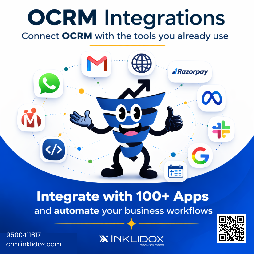 Your CRM should work with your entire business. OCRM integrates with 100+ apps like WhatsApp, Gmail, Google, Razorpay and more. Automate workflows. Close more deals. 🚀 🌐 crm.inklidox.com #CRM #Automation #SalesGrowth #Inklidox